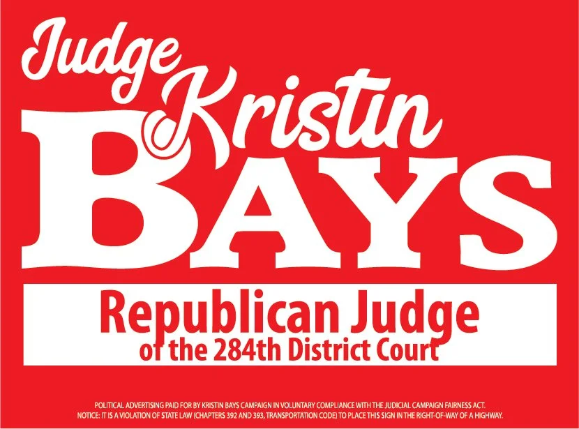 Judge Kristin Bays is proud to announce her campaign for re-election to the 284th District Court in Montgomery County, where she has served since 2018.